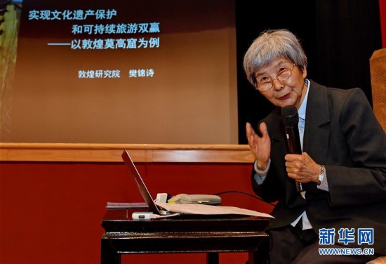 面對(duì)約200名臺(tái)灣民眾,81歲的“敦煌女兒”樊錦詩(shī)在分享敦煌研究院成立75年來(lái)的發(fā)展歷程和成果時(shí),提到最多的詞是“守護(hù)”與“平衡”。
